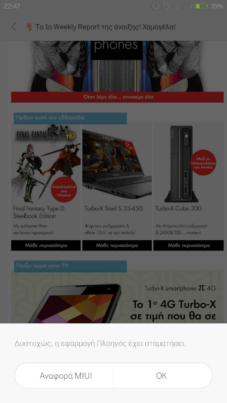 Είμαι στο email μόλις πατήσω για να μπω σε κάποια σελίδα μου βγάζει ότι η εφαρμογή πλοηγός έχει σταματήσει ( έχω κάνει καθαρισμό εφαρμογής ) δεν το κάνει σε ολες τις σελιδες. Με GTV-5.3.20 και GTV-5.3.13.