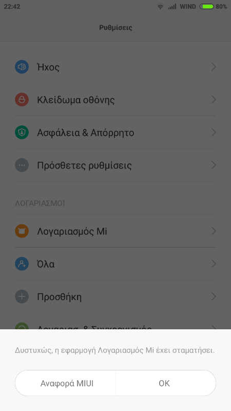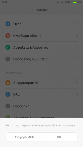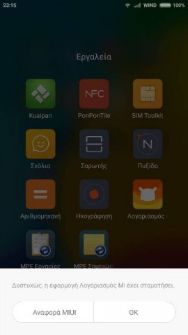 Την 24-04-2015 ξανά έβαλα την 5.4.24 όπως μας ανακοίνωσε ο admin. Πρώτα όμως έκανα wipes και την πέρασα μέσου τις μεθόδου adb sideload για την απόλυτη καθαρή εγκατάσταση όπως μας αναφέρεται στο ανωτέρω topic. Με την έναρξη λειτουργίας του κινητού εμφανίστηκε το μήνυμα ότι δεν λειτουργεί ο λογαριασμός miui. Έστησα τον κινητό δημιούργησα τους λοιπούς λογαριασμούς και προσπαθώ να μπω στον λογαριασμό miui να συνδεθώ, πάλι εμφανίζεται το μήνυμα "ο λογαριασμός miui". Πάω εφαρμογές να κάνω καθαρισμό δεδομένων αλλά δεν χρειάζεται δεν έχει τσεκαρισμένο το σημείο. Μπαίνω σε recovery και κάνω wipe partition, dalvik, reboot αλλά το πρόβλημα δεν διορθώθηκε. Ξανά έκανα εγκατάσταση την room χρησιμοποιώντας miflash αλλά και πάλι το πρόβλημα παραμένει.