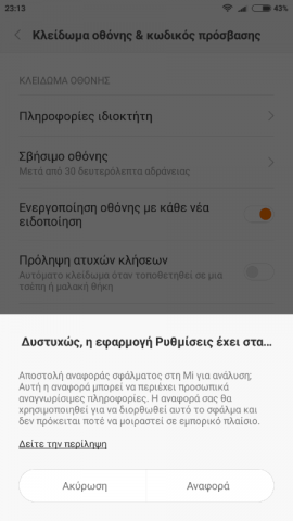 Στην τελευταια GTV, 6.3.17 οταν εχω στα ελληνικα το τηλεφωνο και μπαινω στο μενου "Ρυθμισεις- κλειδωμα οθονης και κωδικος προσβασης- κωδικος και δαχτυλικο αποτυπωμα" κολλαει και δεν μπαινει στο εν λογω μενου και βγαζει μηνυμα οτι η εφαρμογη ρυθμισεις εχει σταματησει κι αν θελω να στειλω αναφορα λαθους. Ekana Dalvik cache & cache wipe αλλα δε διορθωθηκε. Μετα απο συμβουλη σε αλλο μελος με το ιδιο προβλημα να γυρισει το τηλεφωνο στην αγγλικη και να δοκιμασει, εκανα κι εγω το ιδιο, μπηκε κανονικα, εσβησα και τα παλια αποτυπωματα, εβαλα καινουρια, αλλα οταν ξαναγυρισα το τηλεφωνο στα ελληνικα, το προβλημα παραμενει.