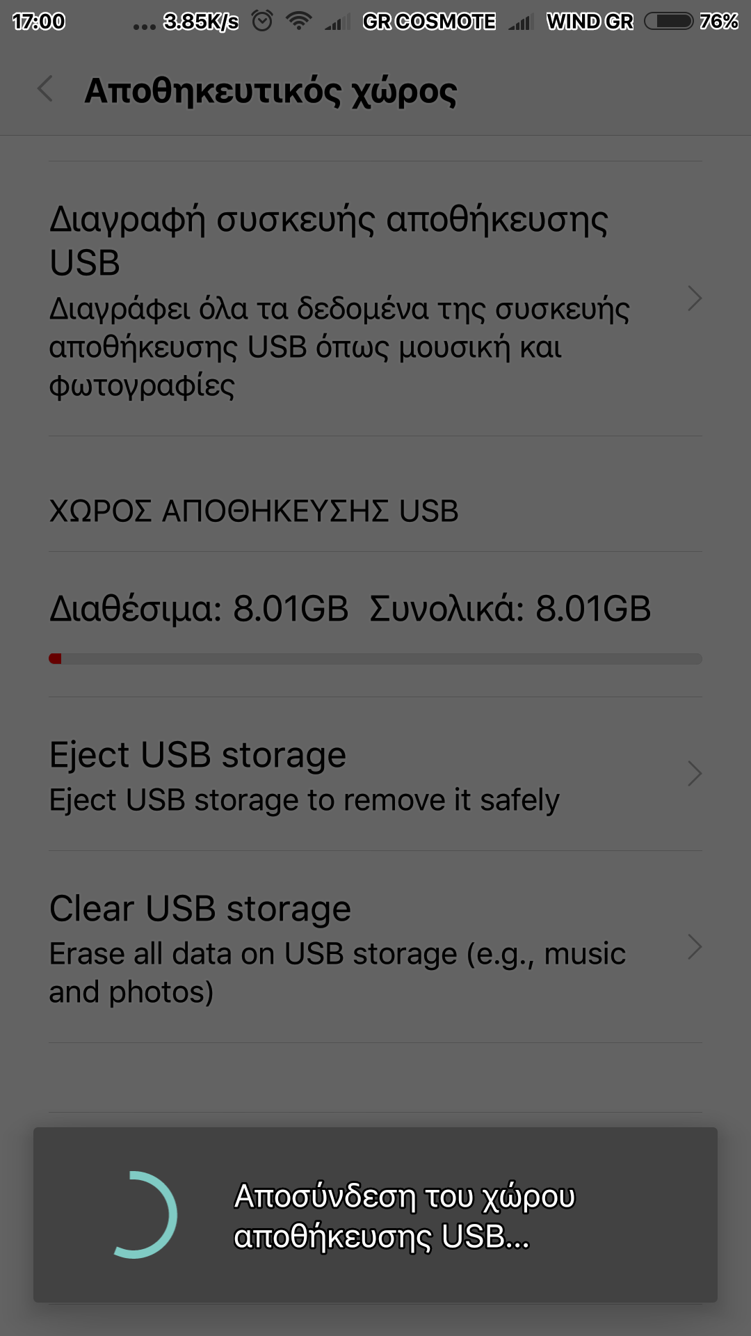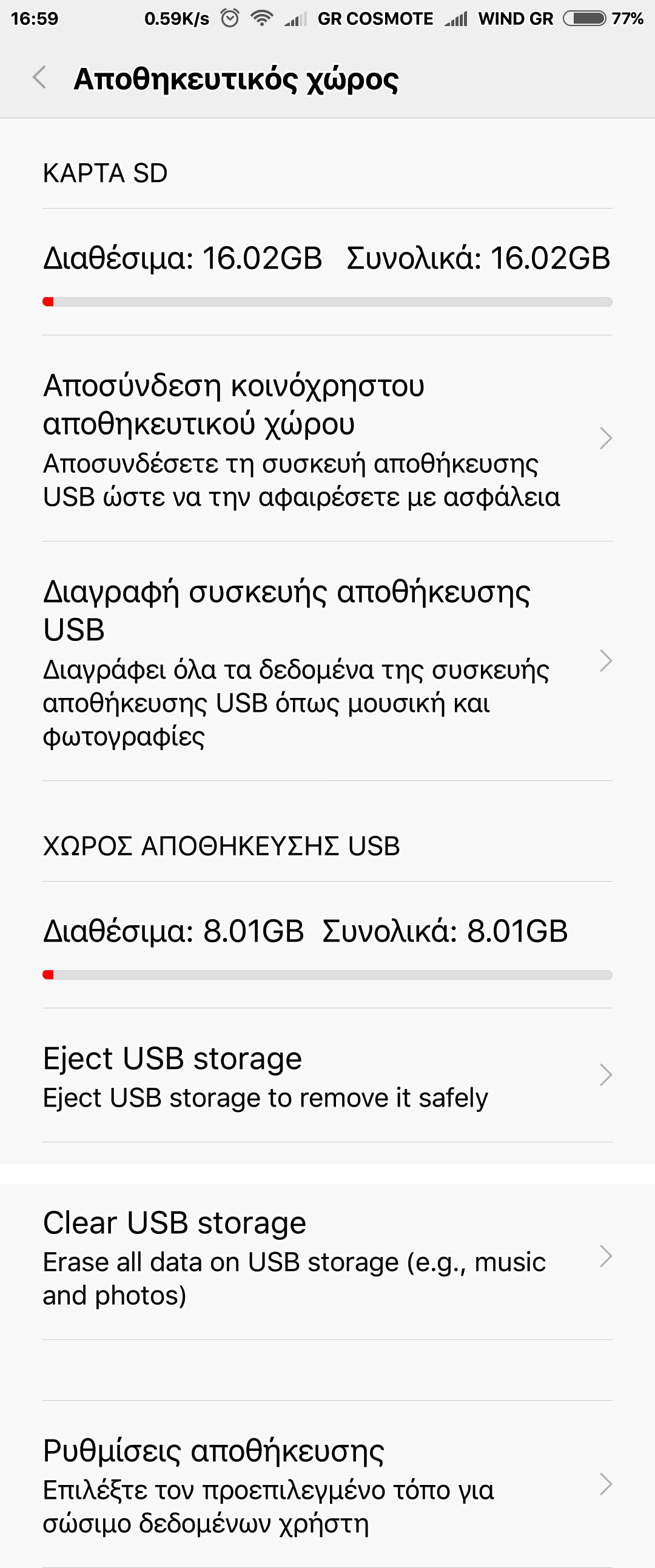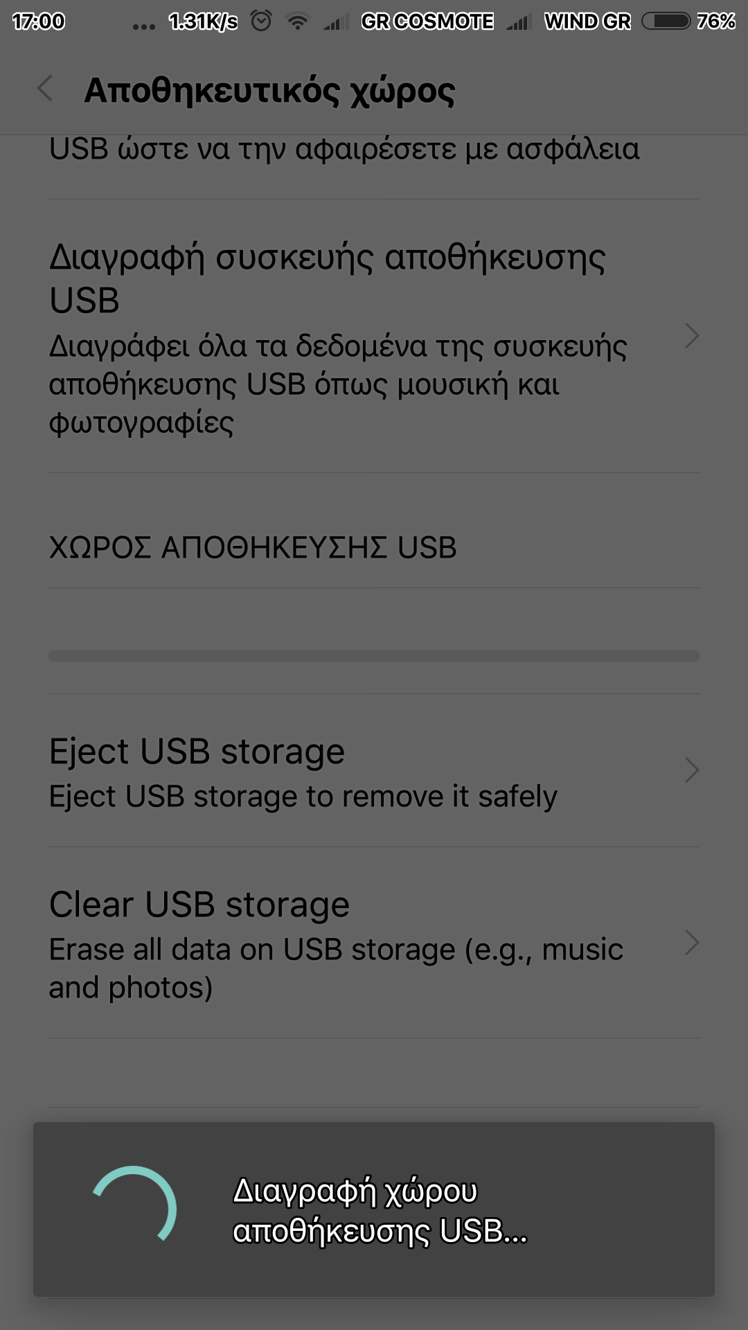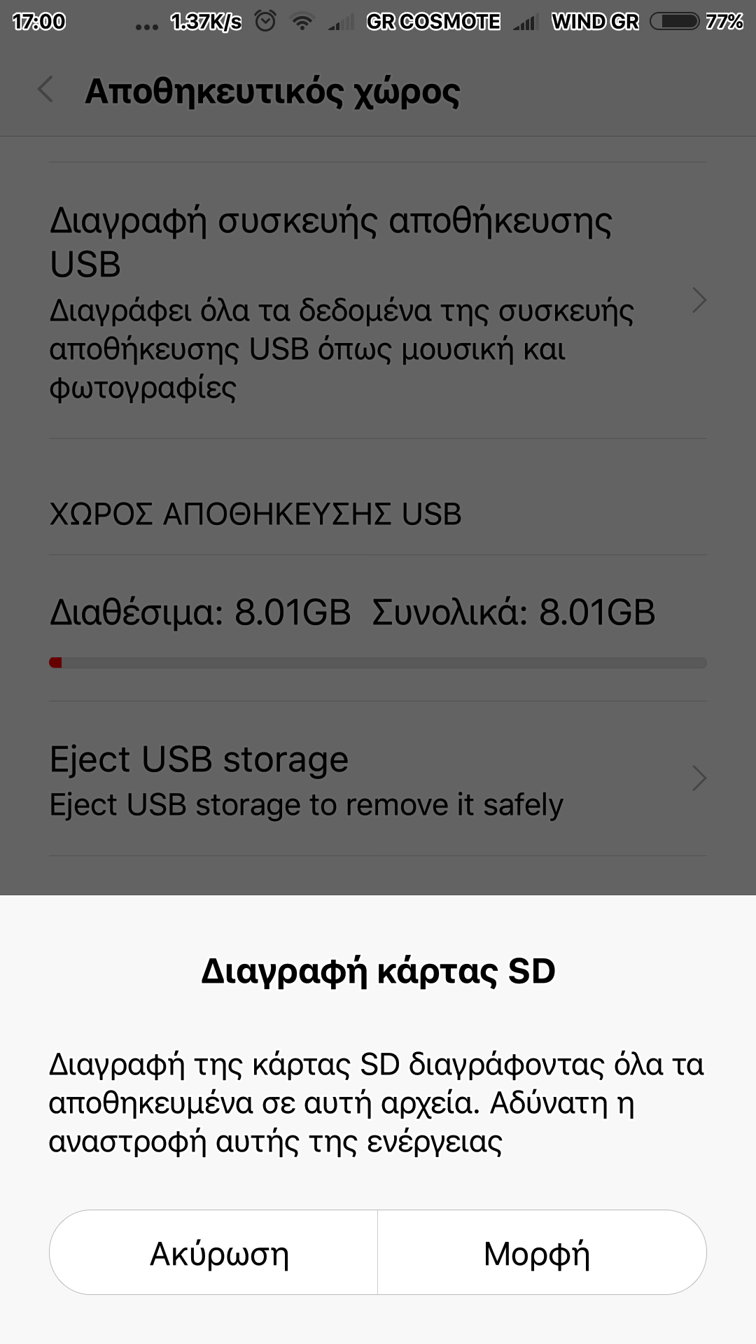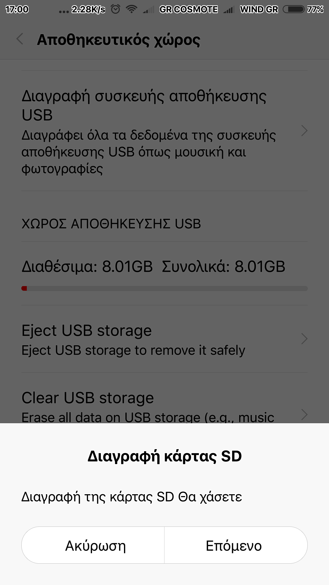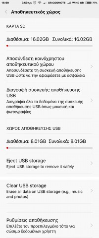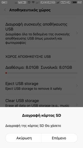 - Όπως βλέπετε και για την κάρτα SD αλλά και για το USB Flashάκι Στο μεν πρώτο γράφει: "Διαγραφή συσκευής αποθήκευσης USB" και στο δε δεύτερο: "Clean USB storage".