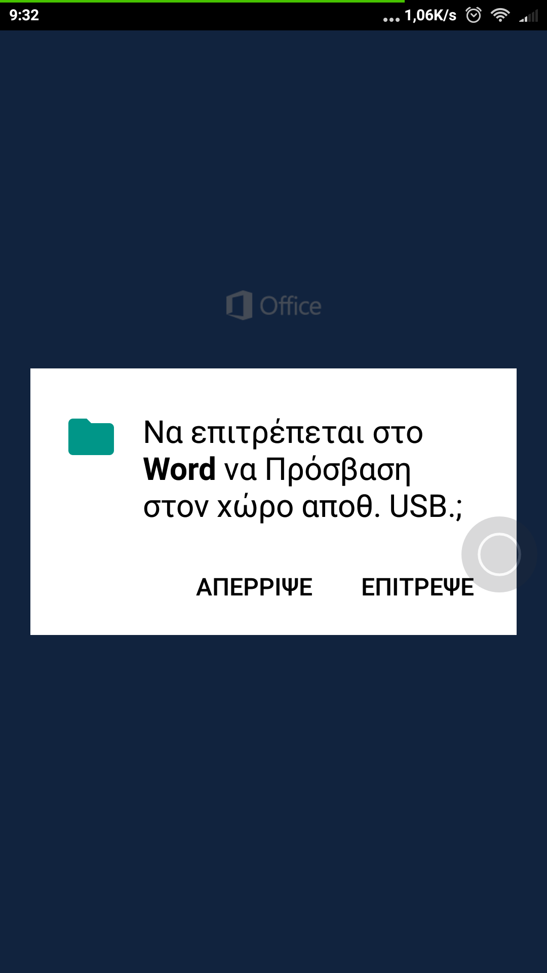 [label][/label]Καλημέρα σε όλους, έχω μεγάλο πρόβλημα στις 2 τελευταίες ρομ v7 όλες οι καινούργιες εφαρμογές που βάζω ζητάνε προνόμια στην USB πχ βάζω το Word και όταν το ανοίγω πετάγεται ένα παράθυρο και με ρωτάει αν θέλω αυτή η συσκευή να έχει πρόσβαση στον χώρο αποθήκευσης USB, όταν πατάω όμως στο επέτρεψε δεν πατάει η επιλογή, πατάει μόνο η επιλογή μην απέρριψε και δεν ανοίγει η εφαρμογή