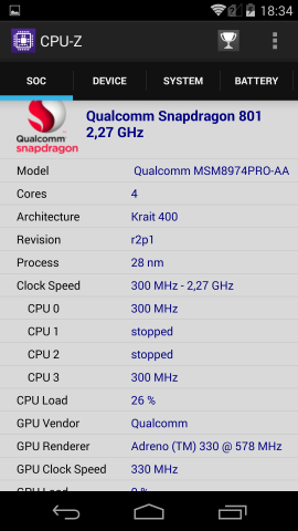 - 2.3GHz Quad-Core Qualcomm Snapdragon 801 CPU