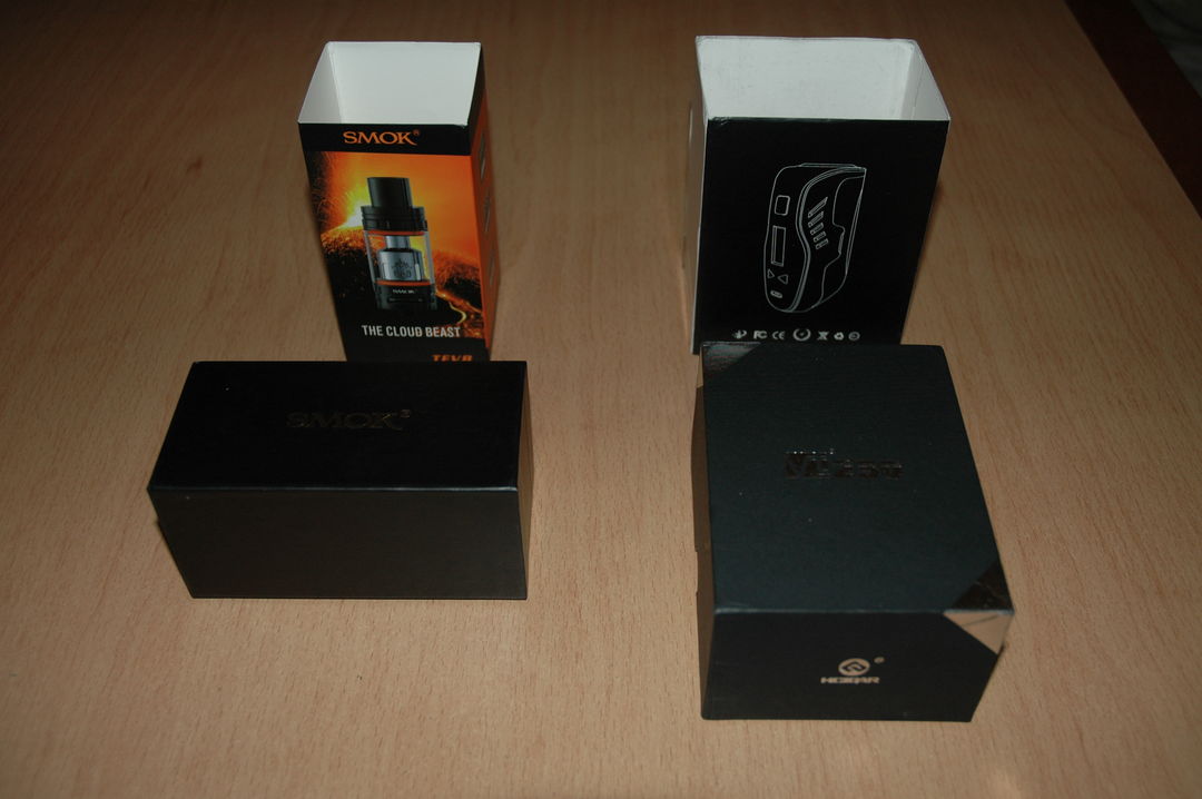 Το VT250 DNA 250 Box Mod από την HCigar και ο ατμοποιητής TVF8 (Cloud Beast) της SMOK, έρχονται με πολύ καλές και όμορφες συσκευασίες σε μαύρο κουτί.