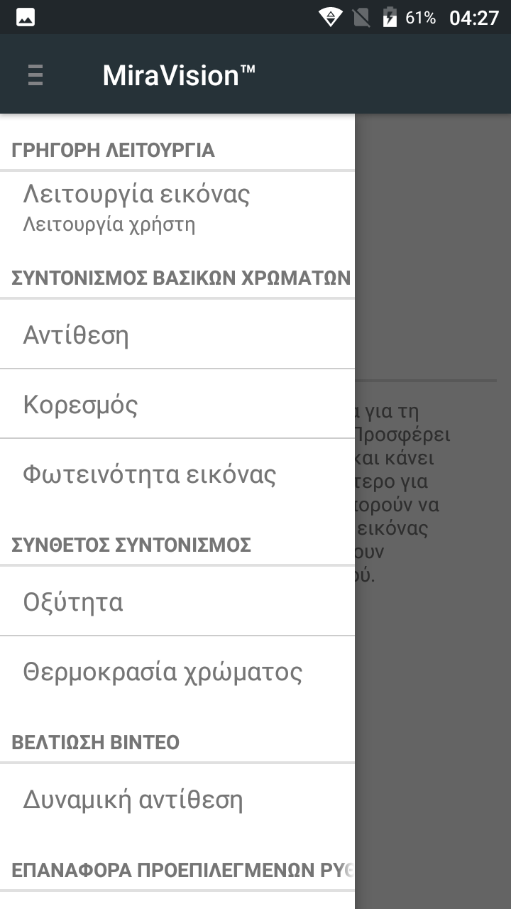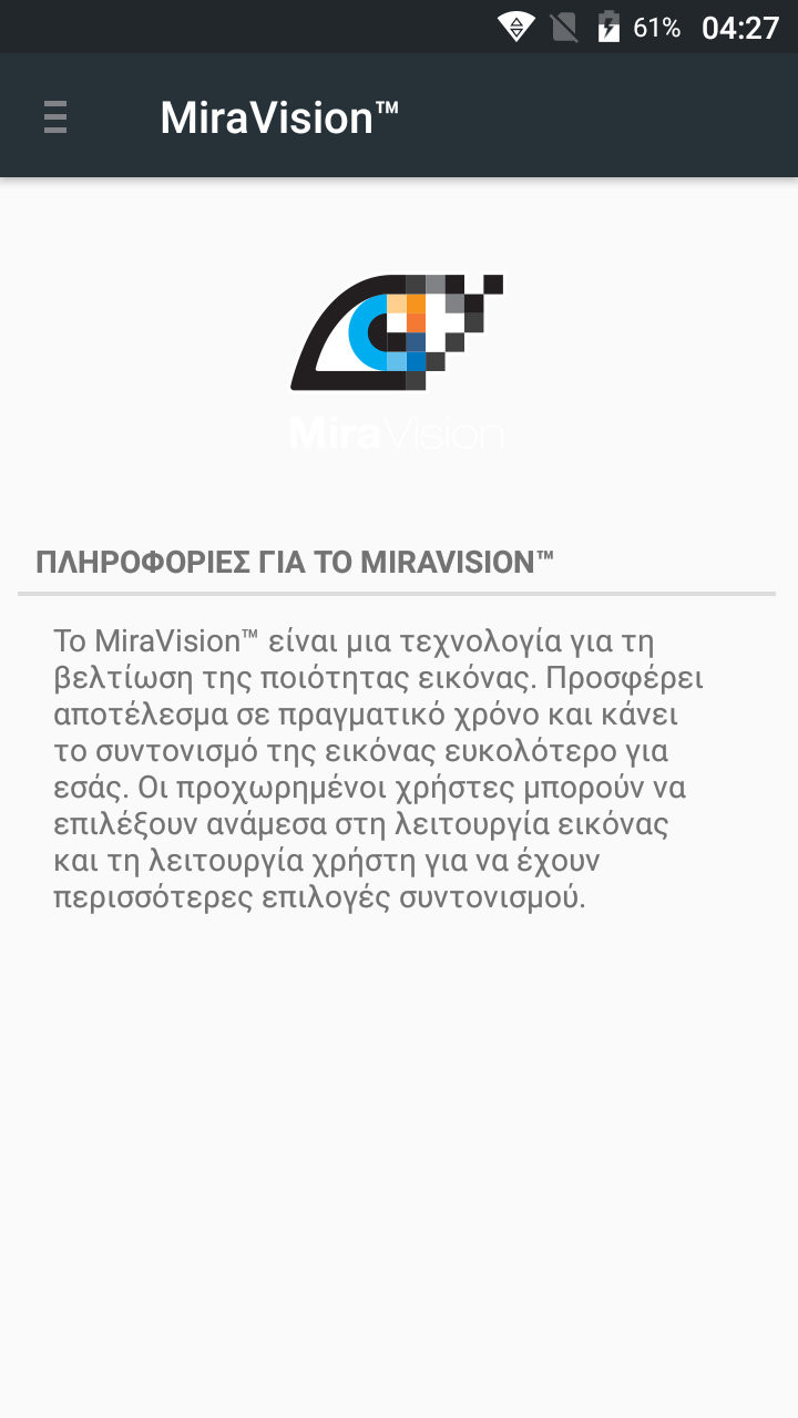 Ήταν πολύ ψυχρή (έντονα μπλε), αλλά ευτυχώς εύκολα μπορεί να την κάνει να απογειωθεί αν μπει στις ρυθμίσεις της, και αλλάξει στα γούστα του ότι βρει από ρυθμίσεις στο MiraVision.