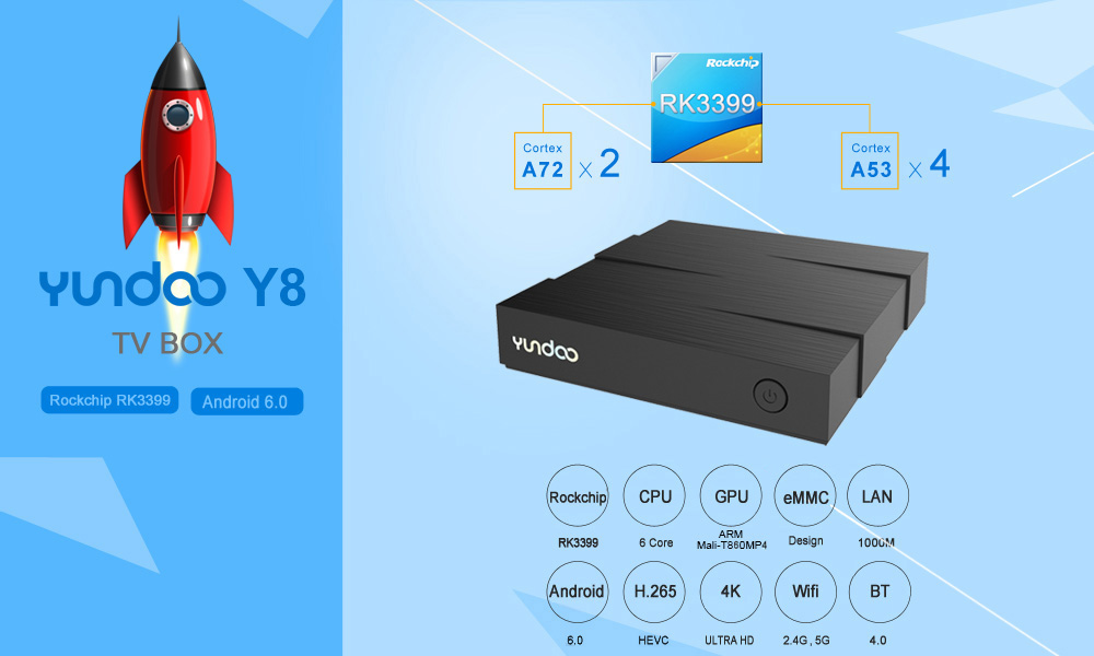 Package Contents: 1 x YUNDOO Y8 TV Box, 1 x Power Adapter, 1 x Remote Control, 1 x HDMI Cable, 1 x English User Manual