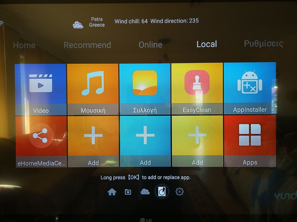 Υπάρχουν αρκετές εφαρμογές TV περιεχομένου, αλλά και μία έκδοση του KODI (Jarvis).