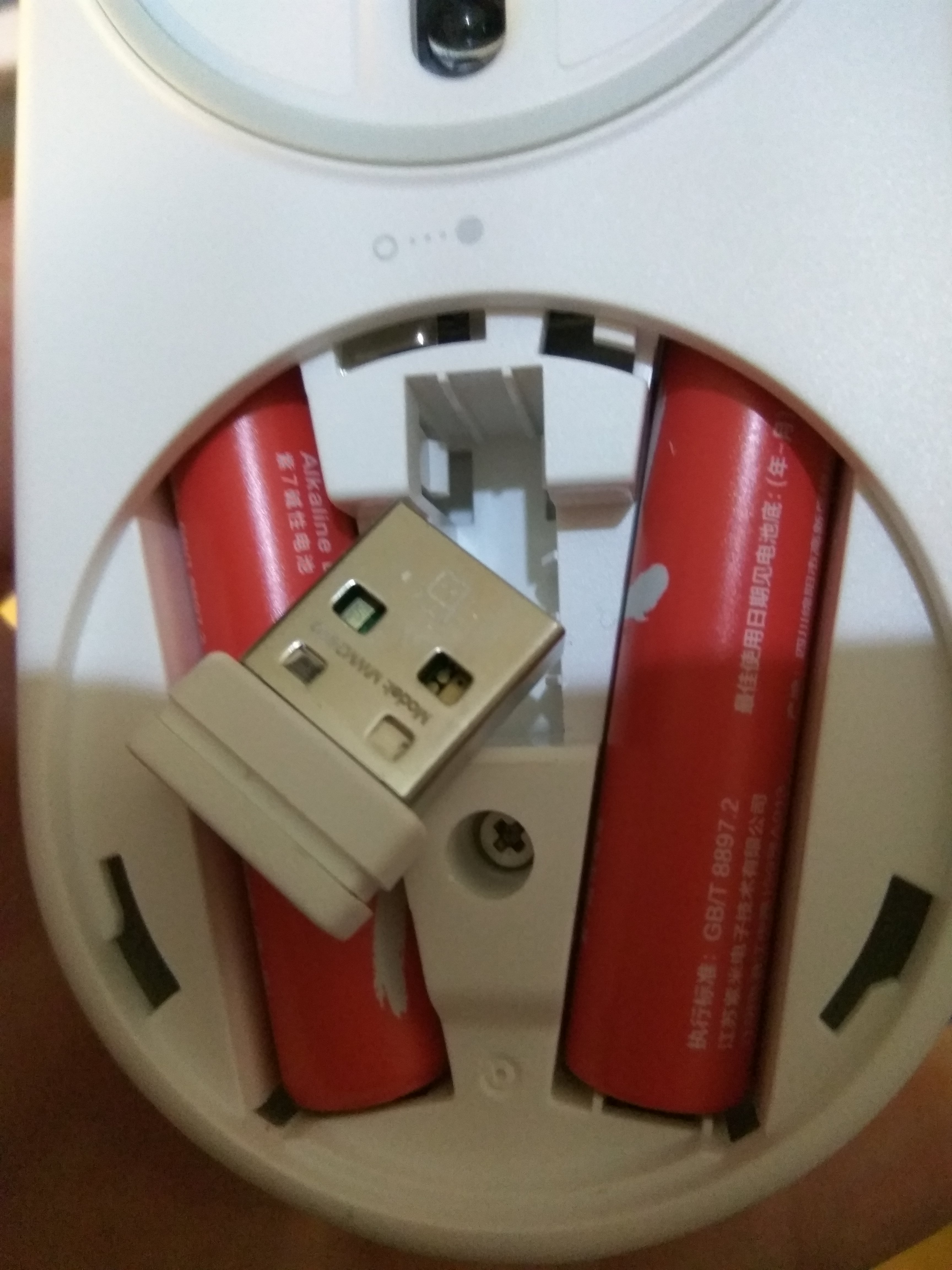 Στην κάτω πλευρά υπάρχει η θέση των μπαταριών (οι οποίες είναι ένα ζευγάρι γνήσιες μπαταρίες διάστασης ΑΑΑ, της Xiaomi και είναι ήδη τοποθετημένες) και στην οποία φιλοξενείται και ο σύνδεσμος usb για τον υπολογιστή. Πιο πάνω συναντάμε το "μάτι" του laser, το κουμπί on-off και ένα ακόμα κυκλικό κουμπί με led.