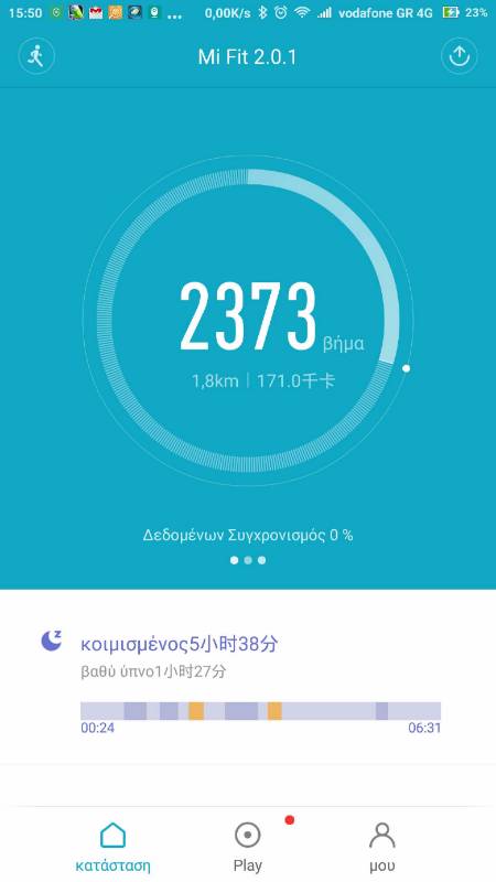 3. Πάμε αρχική σελίδα...χαμός όλα είναι στα κινέζικα! Τρέξτε το Mi Fit. Θα χρειαστεί να κάνετε εκ νέου log-in. Εάν δεν μπει με την πρώτη, επιμείνετε. Δοκιμάστε και με 4G, θα συνδεθεί τελικά. Μόλις συνδεθεί θα δείτε ότι θα κάνει αναβάθμιση το Mi Band σας και θα κατεβάσει νέο firmware. Μόλις τελειώσει μπορείτε να περιηγηθείτε λίγο μέσα στην εφαρμογή. Θα δείτε ότι είναι διαφορετική από αυτή που σας δίνω. Σας έχω μερικές φωτό παρακάτω.