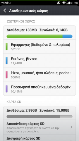 Όσο για τις εφαρμογές. εγώ στο 1S έχω περίπου 132 εφαρμογές και ελεύθερα 3,1 GB ... (και έχω πάντα και μια rom σε μορφή .zip μέσα στην εσωτερική μνήμη). Όλα τα υπόλοιπα είναι στην SD και το MiCloud...