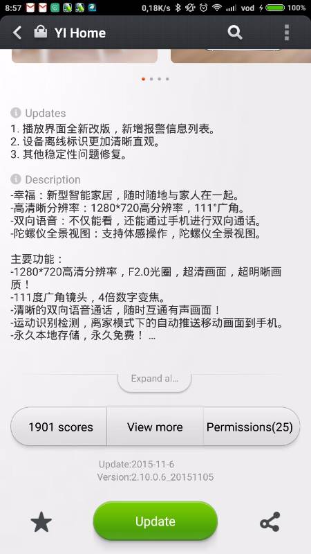 Ανακοίνωση: Υπόψιν από την έκδοση 2.10.2.1_20160422 στα μενού φαίνεται πια και η επερχόμενη κάμερα που θα έχει ανάλυση 1080p! Επίσης μπαίνετε πια με το Yi λογαριασμό σας ή το Mi λογαριασμό σας. Ακόμα εμφανίστηκε άλλη μία κάμερα, η Yi Dome, που φαίνεται σαν κανονική κάμερα ασφαλείας.