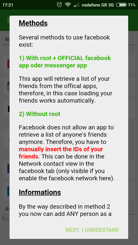 Πατάω για να συνδεθώ με το φβ και μου βγάζει το παραθυρο της πρώτης φωτό. έπειτα εμφανίζεται το παράθυρο της δευτερης φωτό και πατάω enable network. με βγάζει πάλι στην αρχική σελίδα και στις επαφές γράφει 0!!!!!!!