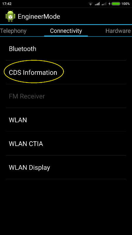 Θα σου εμφανίσει το μενού από το 'Engineer Mode'