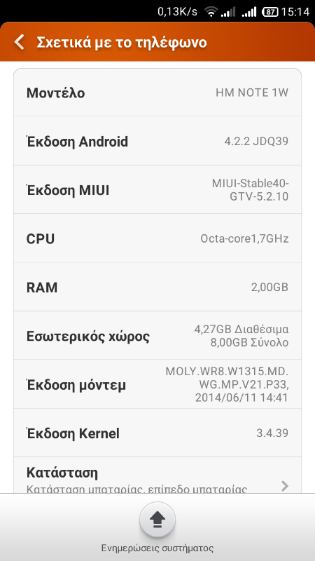 Θα ήθελα αν μπορεί κάποιος να με βοηθήσει να αναβάθμισω το android του Redmi Note 3G. Ή τρέχουσα έκδοση είναι αυτή που φαίνεται στη φωτογραφία που παραθέτω.