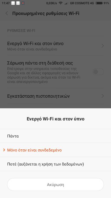 Έχεις παρατηρήσει και κάτι τέτοιο ? Απενεργοποίηση wifi όταν σβήνει η οθόνη