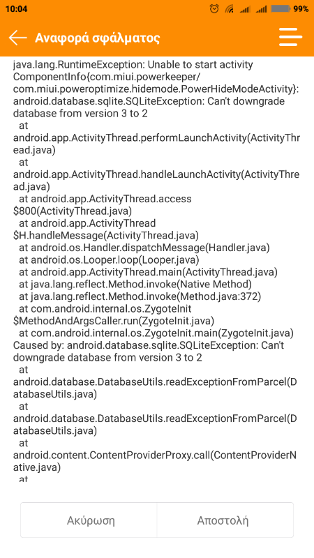 Σας στελνω screenshot απο την αναφορα σφαλματος.