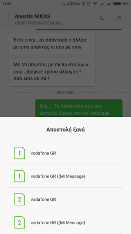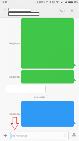 Επίσης πάνω απο το μήνυμα που έρχεται θα γράφει Mi message ή SMS/MMS ανάλογα πως το έστειλε ο άλλος χρήστης ή εμείς.