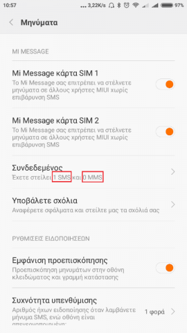 Αυτά ήταν όλα! Επίσης έχουμε τη δυνατότητα να δούμε πόσα SMS/MMS έχουμε στείλει μέσω Mi message, ας δούμε πως. Πάμε πάλι στις ρυθμίσεις και εκεί που λέει Συνδεδεμένος/Αποσυνδεδεμένος απο κάτω ακριβώς φαίνεται τι και πόσα έχουμε στείλει