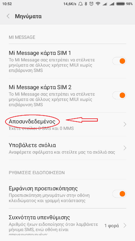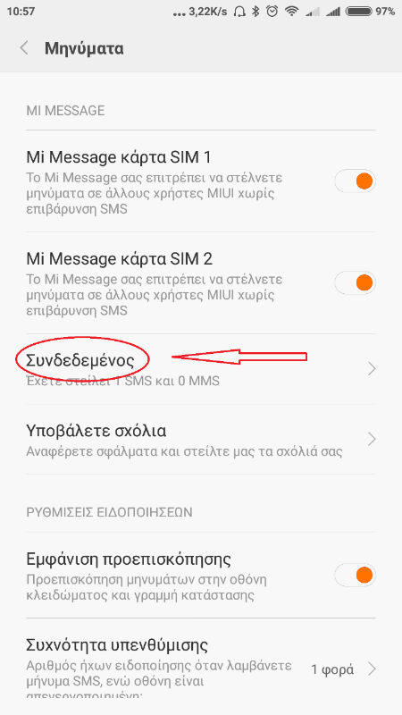 Αυτά ήταν όλα! Επίσης έχουμε τη δυνατότητα να δούμε πόσα SMS/MMS έχουμε στείλει μέσω Mi message, ας δούμε πως. Πάμε πάλι στις ρυθμίσεις και εκεί που λέει Συνδεδεμένος/Αποσυνδεδεμένος απο κάτω ακριβώς φαίνεται τι και πόσα έχουμε στείλει