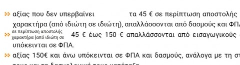 Αντικείμενο που κοστίζει 38€ απαλλάσσεται από εσωτερικούς δασμούς (15€) ή όχι;Ο/H NasDriver έγραψε: