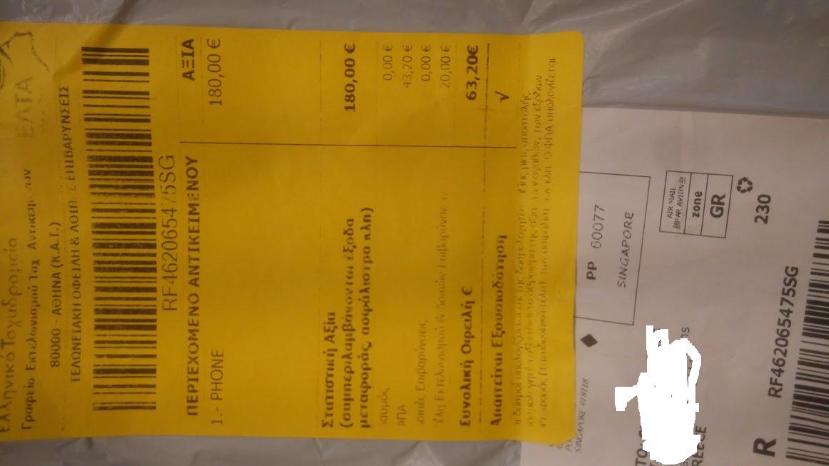 63.20 για redmi note 4x. Έβαλαν αξία τηλεφώνου 180 ευρώ ΦΠΑ 43,20 τέλη εκτελωνισμου 20.00 .
