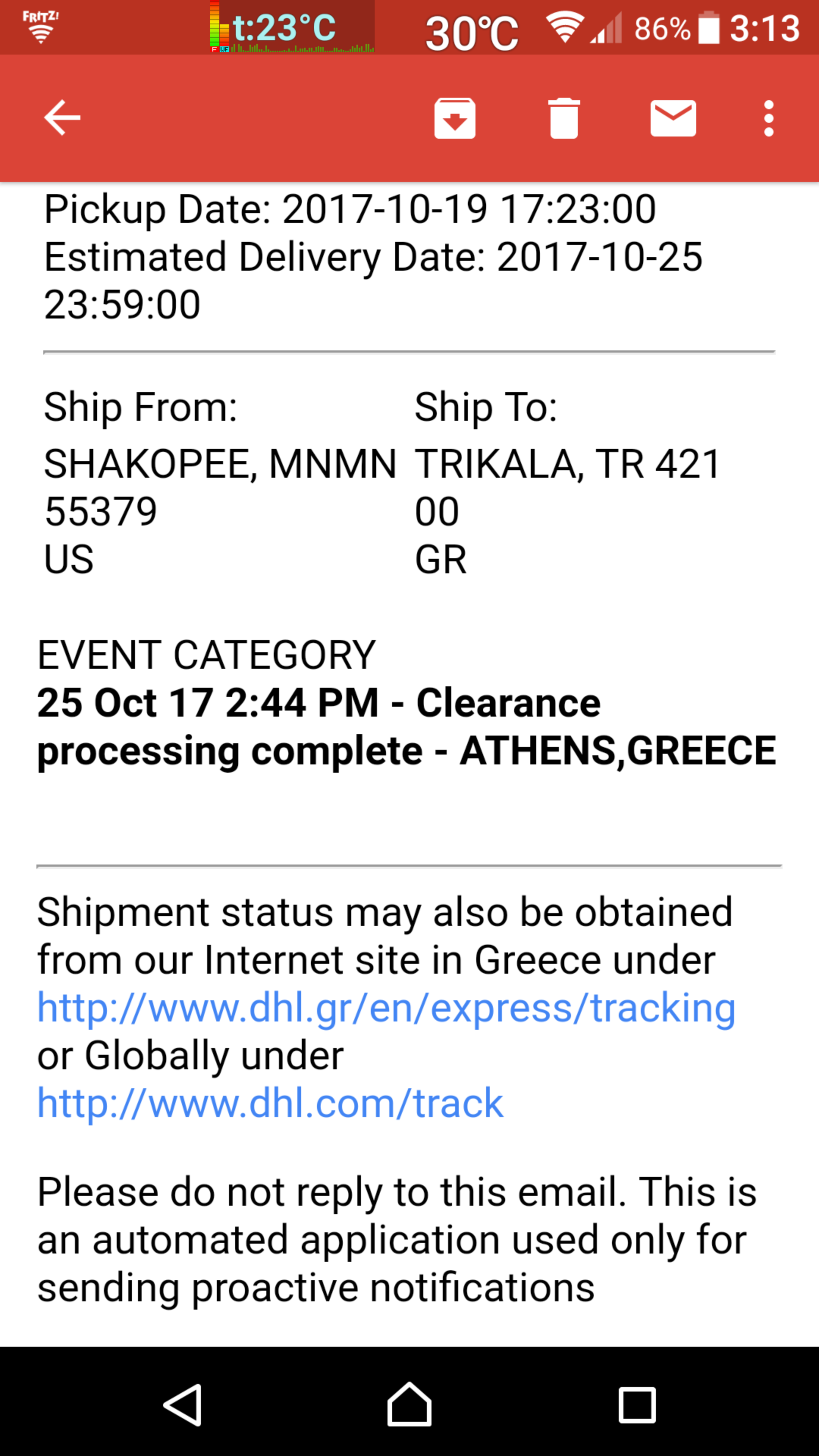Το πακέτο ήρθε πολύ γρήγορα στο τελωνείο μια μέρα έκατσε και βγήκε σήμερα μου ήρθε άλλο δέμα από bankgood θα πάω να παραλάβω και ενημερώνωΟ/H KillGamerGr έγραψε: