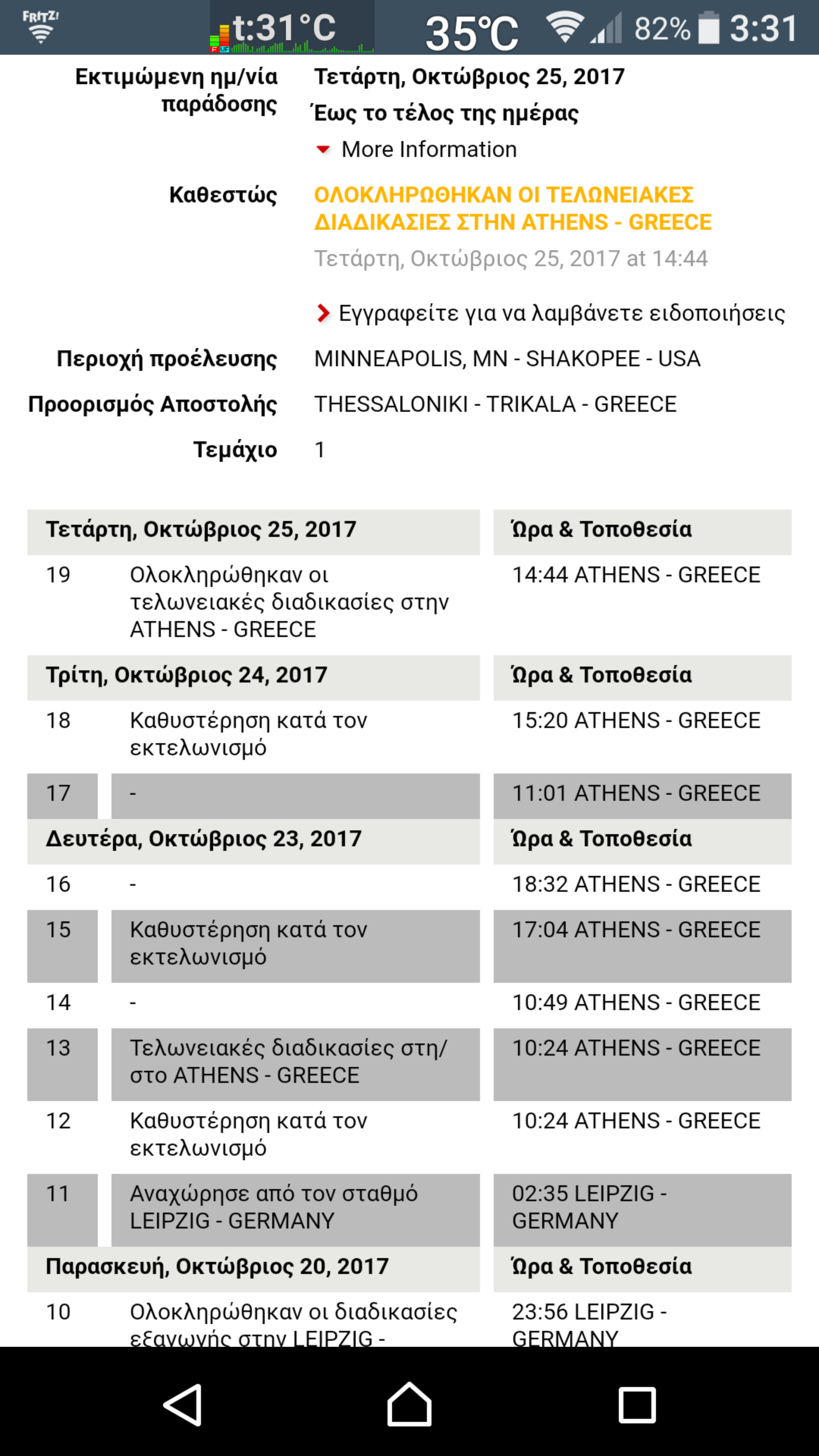 Στο ειδοποιητηριο που ηρθε γραφουν να πληρωσω 3€.Φαινεται πουθενα οτι μπηκε τελωνειο?
