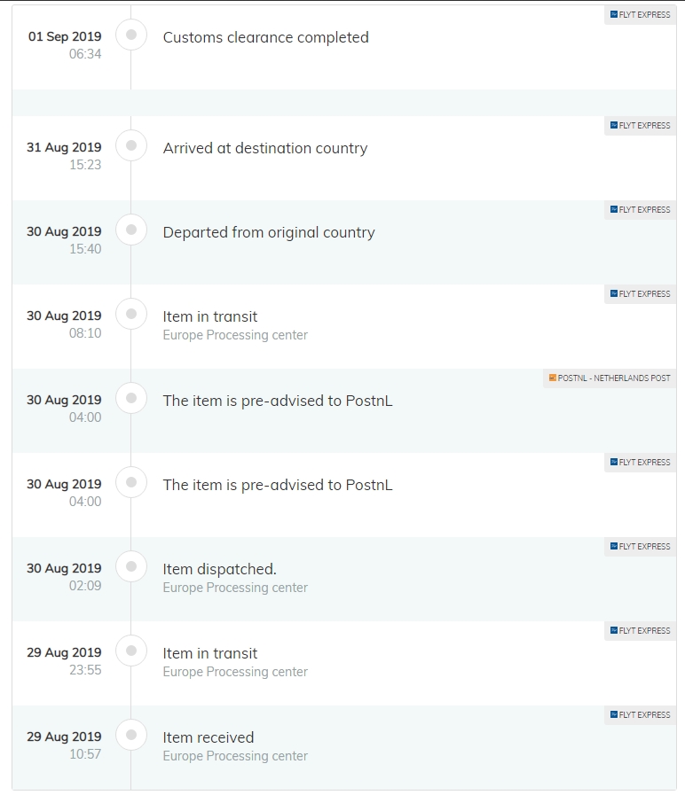 Καλησπέρα, προς ενημέρωση σας το status in transit δεν σημαίνει ότι το αντικείμενο έχει φύγει τελικά. Σήμερα άλλαξε πάλι σε status σε NETHERLANDS, DEPARTURE FROM OUTWARD OFFICE OF Exchange. Και αμέσως ενημερώθηκαν και τα ΕΛΤΑ με αποστολή αντικειμένου από Ολλανδία. Άρα έφυγε τελικώς σήμερα...Ο/H yiatsou έγραψε: