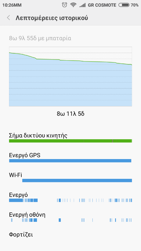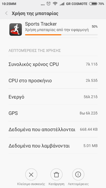 • Σήμερα παρατηρισα ότι στα στατιστικά της μπαταρίας μου λέει ότι είναι ανοιχτό το gps το οποίο το χρησιμοποίησα για 56 λεπτά με το sports tracker και στην συνέχεια το απενεργοποιησα. Επίσης εμφανίζει ότι δουλεύει το sports tracker ενώ ειναι κλειστό. Τις προηγούμενες ημέρες με αυτή την rom δεν είχα παρατηρήσει κάτι παρόμοιο. Έκανα επανεκκίνηση στο κινητό και τώρα εμφανίζει κανονικά ότι δεν λειτουργεί το gps και η εφαρμογή. (την εφαρμογή με το gps τα άνοιξα αμέσως μετά από πλήρη φόρτιση, που έγινε με κλειστή συσκευή).