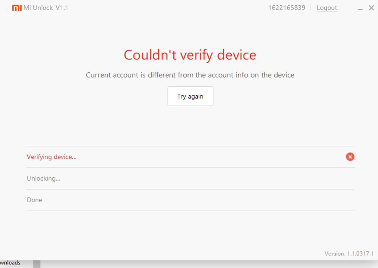 Φοβάμαι ότι υπάρχει κάποιο θέμα με τον server της Xiaomi που δεν μπορεί να ελέγξει την αυθεντικότητα του κινητού και του χρήστη ή θέλει καποιο χρόνο (στο ευρωπαΙκό forum λένε να ξαναπροσπαθήσεις μετά μία εβδομάδα)!!!