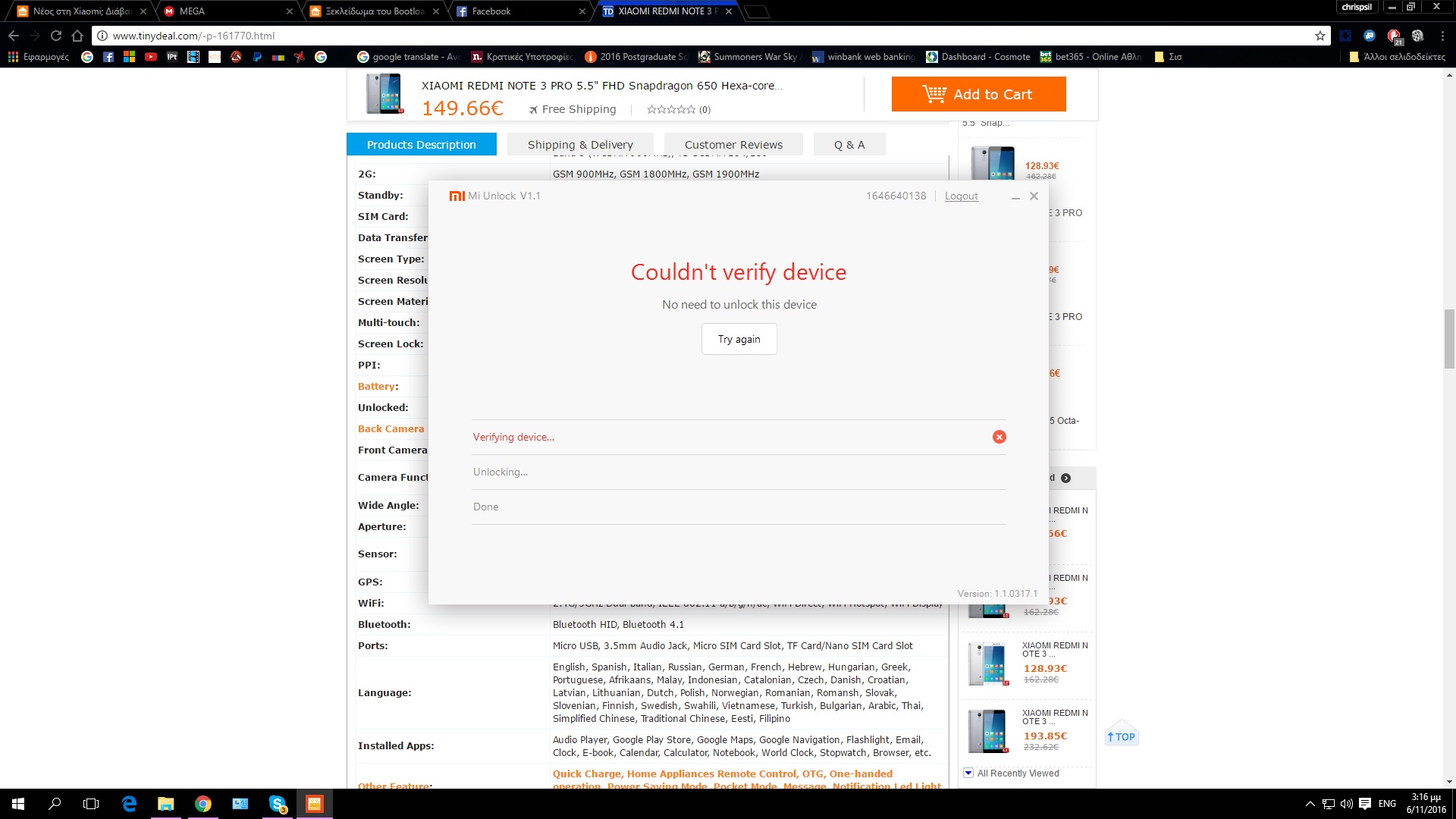 Καλησπέρα σε όλο το φόρουμ.Είμαι νέος χρήστης και έχω ακολουθήσει πιστά τα βήματα για να κάνω unlock το bootloader.Ακολούθησα τη διαδικασία πήρα permission και κατέβασα το MiUnlock.Όταν έφτασα στο σημείο να κάνω unlock έγινε αυτό.Τι συνέβη ακριβώς;Το αγόρασα και ήταν ήδη unlocked?Tinydeal για όσους ρωτήσουν το μάρκετ.You are what you are and what you are is OK!