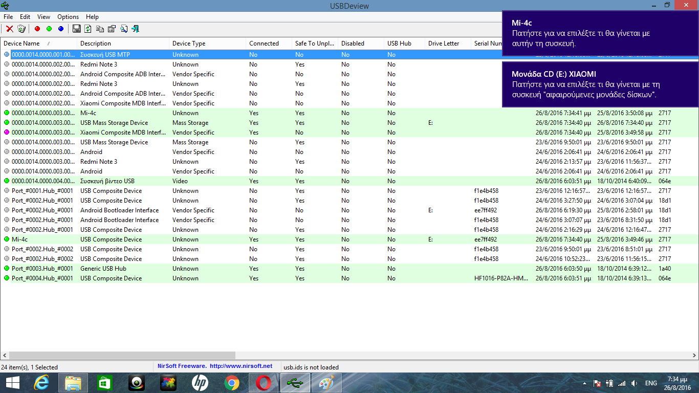 Με το usbdeview (πρόγραμμα pc) μπορείς να δεις τους οδηγούς πιο αναλυτικά που έχουν περαστεί στο pc