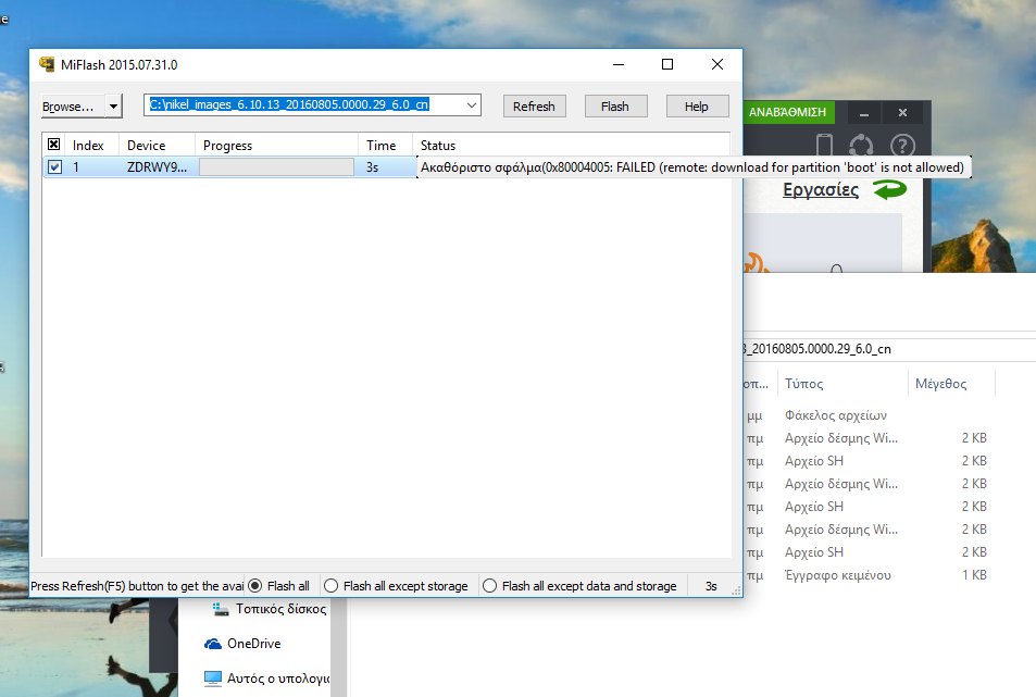Δοκίμασα αυτό με τον εντοπισμό συσκευής, την εντοπίζει κανονικά και πάλι τζίφος. Έχω ενεργό το OEM Unlocking στο Developer's options και πάλι τίποτα. Έκανα και μια ενημέρωση που ήθελε το κινητό και πάλι τίποτα. Καμιά ιδέα παιδιά; Έχω απελπιστεί.