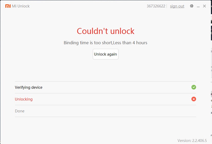καλησπέρα σας! σε xiaomi mi max 3/32 προσπάθησα για ξεκλείδωμα bootloader οπως αναφέρεται στον οδηγό,έχοντας πάρει άδεια απο xiaomi...με τον ίδιο λογαριασμό σε Miunlock και συσκευή και στο 50% του Unlock μου εμφανίζει το μήνυμα coundn't verify decice... η rom της συσκευής είναι η MIUI 8 GLOBAL 7.3.30|Beta... τι προτείνετε για παρακατω?