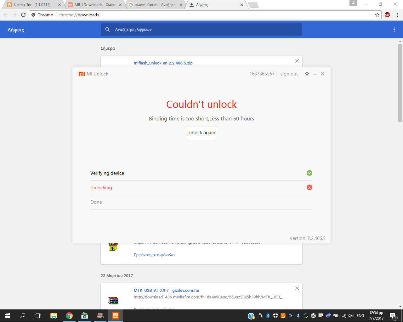 Καλησπερα σε ολη την ομαδα....εχω μια απορια και χρειαζομαι λιγο την βοηθεια σας...Αγορασα προσφατα το redmi note 4 met και προσπαθω να ξεκλειδωσω τον bootloader ενω εστειλα μηνυμα στην xiaomi και μεσα σε 30 λεπτα ηρθε μηνυμα και με ενημερωσε οτι μπορω να το ξεκλειδωσω ανοιγοντας το προγραμμα αντιμετωπιζω αυτο το προβλημα...καμια βοηθεια για το τι να κανω????