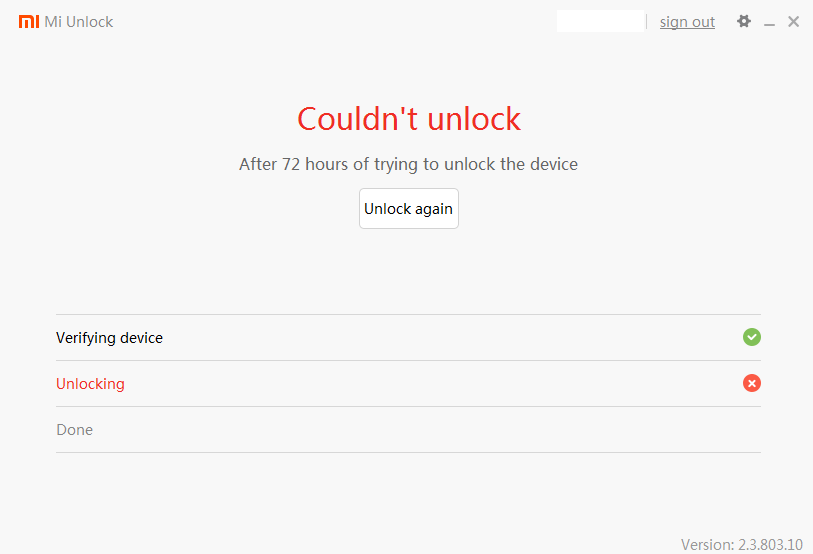 Κατέβασε το τελευταίο mi unlock tool, χρησιμοποιείς παλιό.