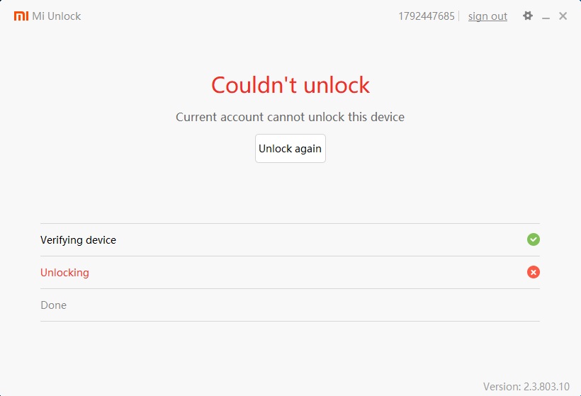 ενω και με την developer μου βγαζει το ιδιο error οταν παταω add account and device απο το mi unlock status.