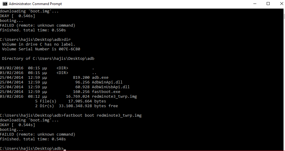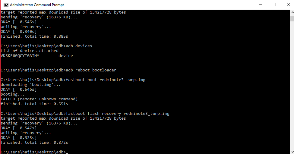 Τώρα κόλλησα στο fastboot boot redminote3_twrp.img