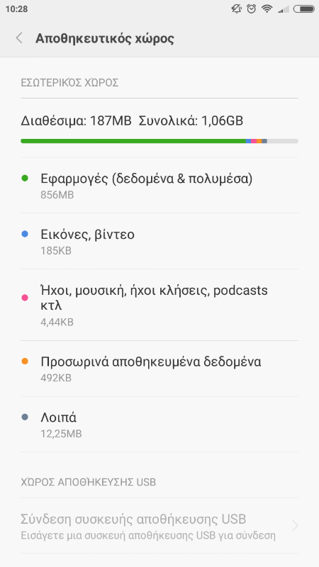 Επίσεις Στον "αποθηκευτικό χώρο" βλέπω ότι είναι διαθεσιμα 146ΜΒ από τα 1,06GB έχοντας εγκαταστήσει 2-3 εφαρμογες (facebook, viber, youtube).