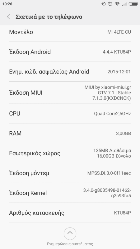 Πήρα στα χέρια μου το MI4 χτες και εγκατέςτησα την τελευταία έκδοση rom (Mi-4 (Cancro) => xiaomi-miui-hellas-4.4.4_cancro_Stable-V7.1.3.0.zip )