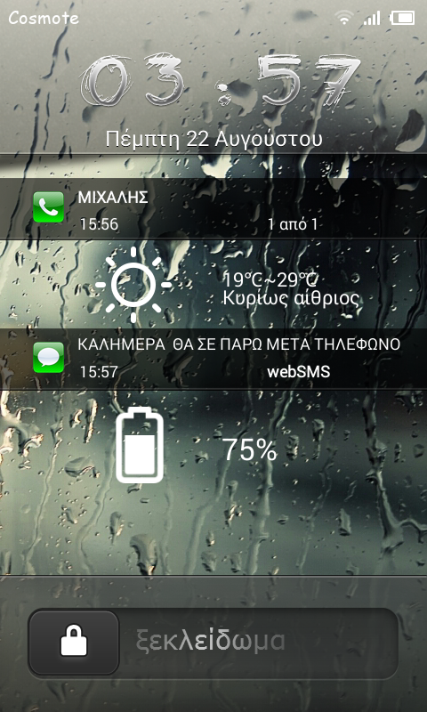 Εχω προσθεσει θεμα καιρου και μπαταρια (minimal white). Εβαλα επισης και ειδοποιηση για αναπαν. κλησεις κ SMS και αλλαξα το κουμπι ξεκλειδωματος το εκανα λιγο μεγαλυτερο