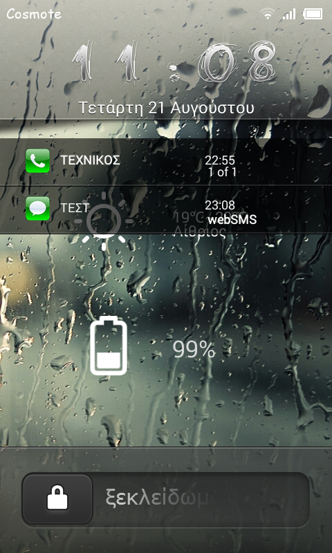 Εχω προσθεσει θεμα καιρου και μπαταρια (minimal white). Εβαλα επισης και ειδοποιηση για αναπαν. κλησεις κ SMS και αλλαξα το κουμπι ξεκλειδωματος το εκανα λιγο μεγαλυτερο