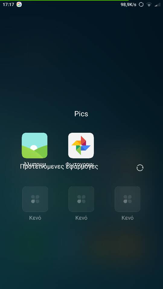 Καλησπέρα! Πέρασα τη ρομ και αντιμετωπίζω το θεμα που φαίνεται και στη φώτο. Σε κάθε φάκελο που έχω φτιάξει έχει αυτό το μήνυμα που βλέπετε και δεν αλλάζει κάτι όση ώρα και αν περιμένω . Και αν έχω περισσότερα εικονίδια και περνάνε πάνω απ το μήνυμα, δεν μπορώ να τα συρω.. Υπάρχει κάποια ρύθμιση που θα μπορούσα να απενεργοποιησω αυτή τη λειτουργία αφού δεν δουλεύει;;