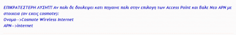 Εκανα διαγραφή του APN και επαναφορα και ολα κομπλε