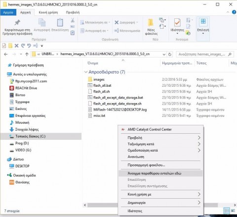 - πάμε εκεί που εγκαταστήσαμε το Miphone =>πχ C:\Program Files (x86)\Xiaomi\MiPhone\Google\Android και βρίσκουμε τα αρχεια: adb.exe AdbWinApi.dll AdbWinUsbApi.dll fastboot.exe τα κάνουμε αντιγραφή και τα βάζουμε στο φάκελο που αποσυμπιέστηκε η rom (δηλαδή στον φάκελο hermes_images_V7.0.6.0.LHMCNCI_20151016.0000.3_5.0_cn που είναι μέσα στο C:\)