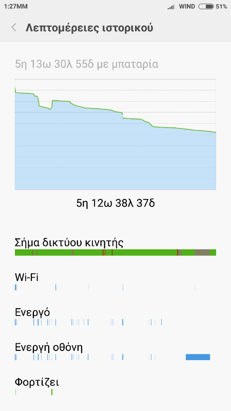 Και εξηγούμαι. Με την Kit Kat είχα συνολικά καλύτερη διάρκεια αλλά όχι περισσότερες ώρες οθόνη. Αυτή τρώει περισσότερο όταν κάθεται. Έχω δει και 9% κατανάλωση σε ένα βράδυ. Υποθέτω πως οι φίλοι που το έχουν πιο φορτωμένο θα είναι χειρότερα γιατί θα συγχρονίζει πιο συχνά.