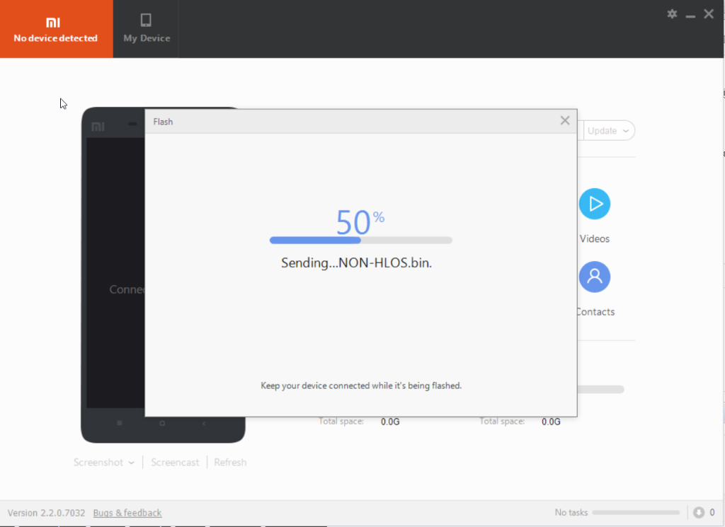 Κάποια στιγμή (στην απογοήτευση μου πάνω) βλέπω ότι μπορεί να κάνει Flash από την εφαρμογή της Xiaomi στο P.C. και το ξεκινάω το Flash. (Παρόλο δεν αναγνώριζε την συσκευή μου η εφαρμογή PC-Suit.