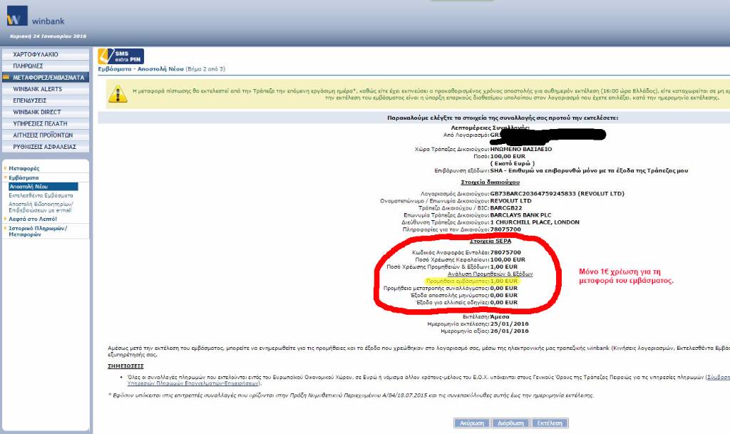 2. Η προσθήκη χρημάτων γίνεται μέσο εμβάσματος και με χρέωση μόλις 1€ σε κάθε συναλλαγή (ισχύει για ποσά μέχρι 15.000€ και από τράπεζα Πειραιώς, Alpha, Εθνική και Eurobank όπου και δοκιμάστηκε η υπηρεσία). Προσοχή το 1€ ισχύει μόνο για εμβάσματα μέσω web banking, εφόσον ακολουθήσετε επακριβώς τις οδηγίες και μόνο από pc και όχι εφαρμογής web banking κινητού.