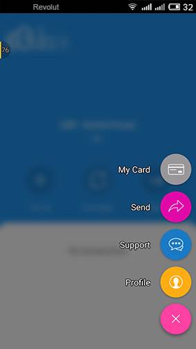 8. Στο κάτω μέρος και δεξιά στην αρχική οθόνη του Revolut υπάρχει και ένα πορτοκαλί κουμπί το οποίο ανοίγει το μενού της εφαρμογής, όπως στην εικόνα