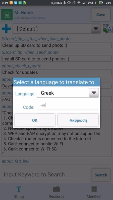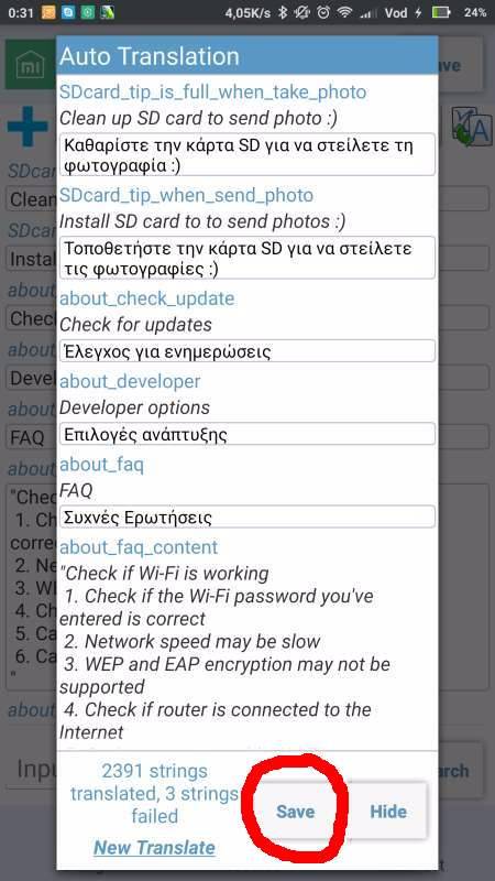 Σημείωση: Ο τρόπος αυτός δεν πιάνει πάντα. Πολλές φορές η μετάφραση δημιουργεί προβλημα στο compile της εφαρμογής. Η μετάφραση είναι Google translation, οπότε μπορει να διαβάσετε τέρατα! Τον τρόπο αυτόν τον δίνω για να μπορούν όλοι εύκολα και γρήγορα να μεταφράσουν ότι θέλουν.