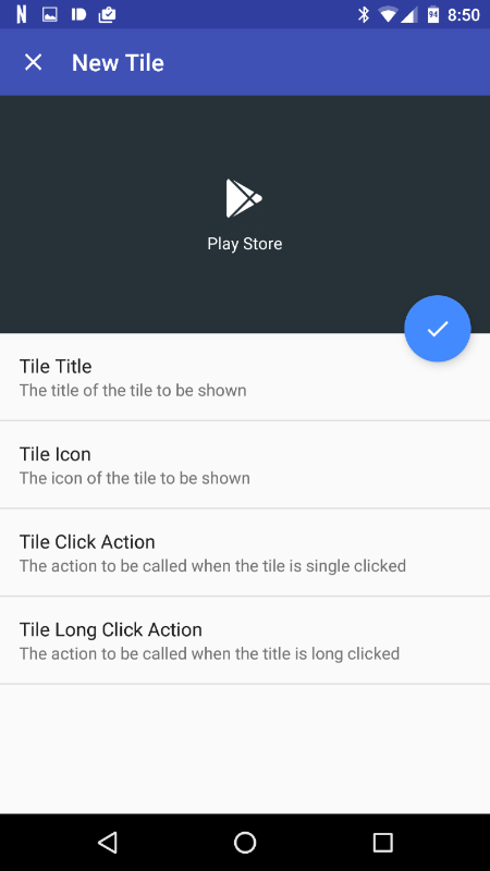 app. Κάθε πλακίδιο μπορεί επίσης να έχει προσαρμοσμένο κείμενο, μια εικόνα και πατήστε παρατεταμένα δράση. Όπως με όλα τα γρήγορες ρυθμίσεις